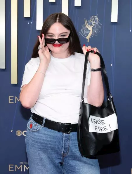 ممثلة أمريكية تُطالب بوقف إطلاق النار على ريد كاربت حفل الإيمي 2025- صور