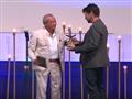 سلم رجل الأعمال نجيب ساويرس، الفنان "توماس مورجان" جائزة "سينما من أجل الانسانية" عن فيلمه "سفرة"، خلال حفل ختام مهرجان الجونة السينمائي.