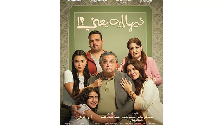 "فيها إيه يعني" تأليف مصطفى عباس، وليد المغازي ومحمد أشرف، إخراج عمر رشدي حامد، بطولة ماجد الكدواني، غادة عادل، أسماء جلال، مصطفى غريب، ميمي جمال، وريتال عبدالعزيز.