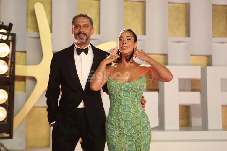 حضر الفنان محمد فراج رفقة زوجته الفنانة بسنت شوقي، حفل افتتاح الدورة الثامنة لمهرجان الجونة السينمائي بمدينة الجونة.