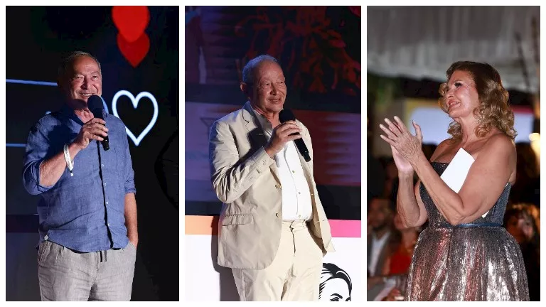 وقبّل نجيب وشقيقه سميح يدي يسرا، أثناء تكريمها في رابع أيام مهرجان الجونة السينمائي، تقديرًا لمسيرتها الفنية وأثرها الكبير في صناعة السينما والفن العربي.