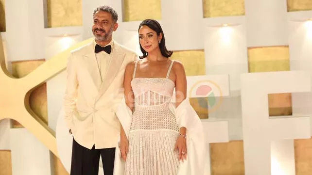"رومانسية على الريد كاربت".. بسنت شوقي ومحمد فراج بإطلالة بيضاء في ختام مهرجان الجونة
