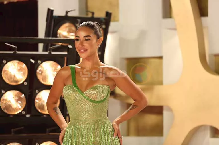 ظهرت آية سماحة مرتدية فستان قصير بالشراشيب واللون الأخضر، والتقطت العديد من الصور التذكارية على الريد كاربت.