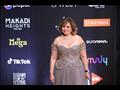 وظهرت الفنانة انجي المقدم بفستان باللون الأخضر مع ذيل ورائه، متعمدة احياء موضة الذيل الطويل على الريد كاربت.