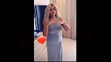 تميّز الفستان بتفصيلة جانبية بسيطة أضفت لمسة عصرية على الإطلالة، بينما نسّقته بوسي مع إكسسوارات فضية لامعة من علامة، شملت خاتمًا بارزًا وسوارًا أنيقًا وعقدًا رقيقًا زاد من فخامة المظهر.
