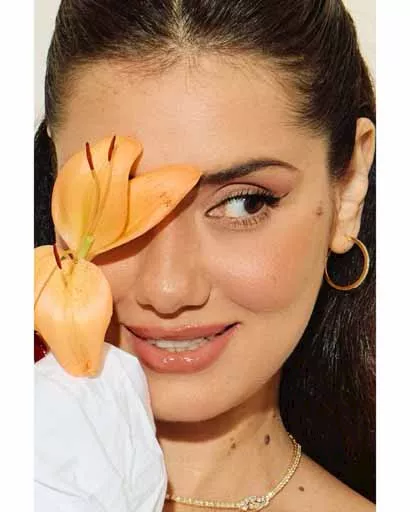ومن الناحية الجمالية، اعتمدت مكياجا نودي، حيث وضعت أحمر شفاه بدرجات الكشمير.