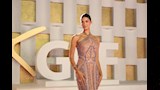 وظهرت المطربة مايا دياب بإطلالة مثيرة للجدل، إذ ارتدت فستانا طويلا شفافا دون بطانة مزيج من اللونين الذهبي والأخضر الفاتح، ومزود بفتحة ساق جريئة أحد الجانبين، واعتمدت مكياجا ناعما بدرجات الألوان الترابية، واختارت أن تترك خصلات شعرها منسدلا على الجانبين، ونسقت مع إطلالتها كلاتش باللون الذهبي.
