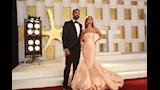 وبدا الثنائي بإطلالة متناسقة تعكس المشاعر الرومانسية بينهما، أمام العدسات على السجادة الحمراء.