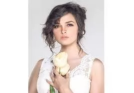 كما اختارت ريم تسريحة الشعر المنسدل على الجانبين.