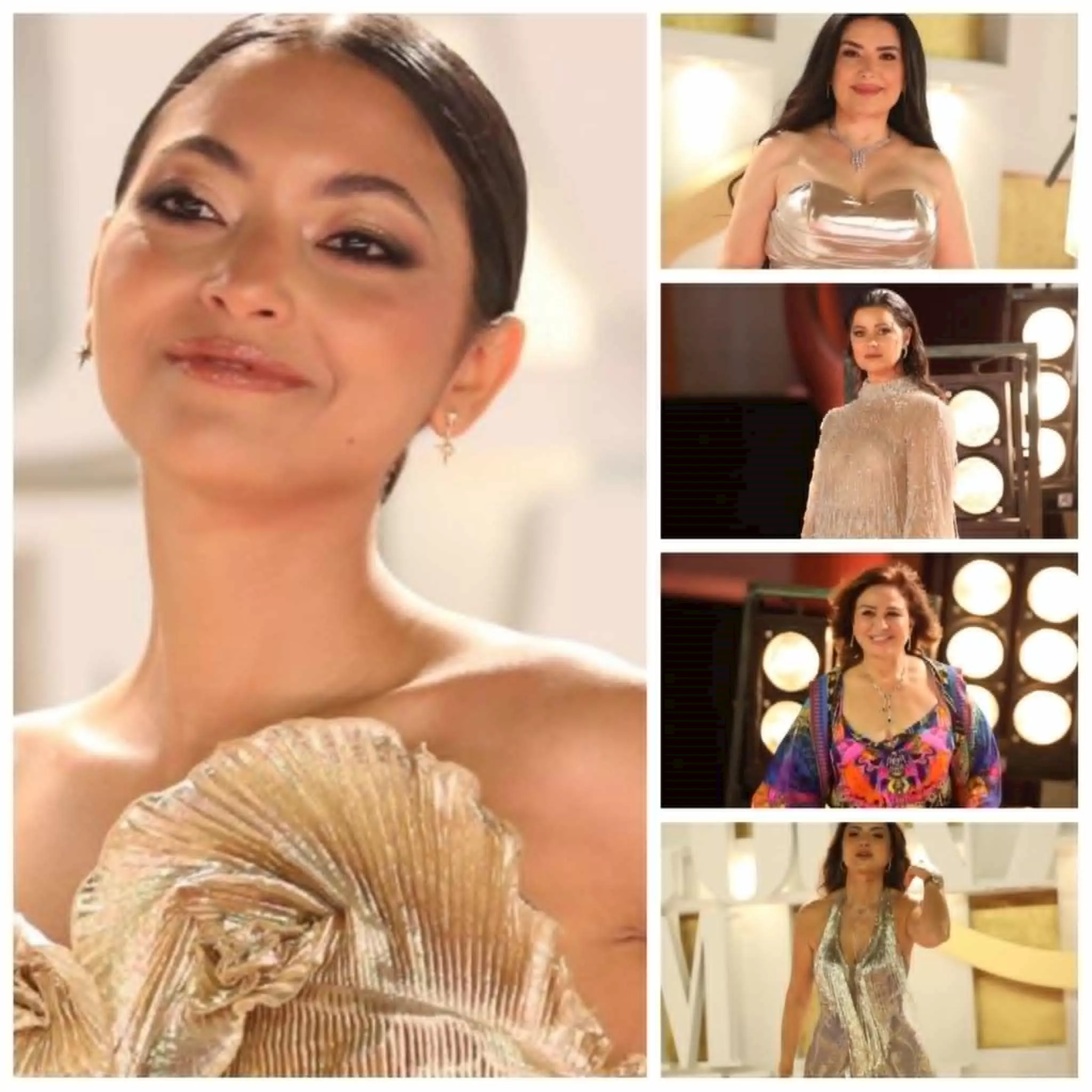 وظهرت روجينا بفستان طويل باللون الوردي "كت" مزينا بتطريزات من الأعلى ومزود بـ "بوليرو" بنفس اللون.