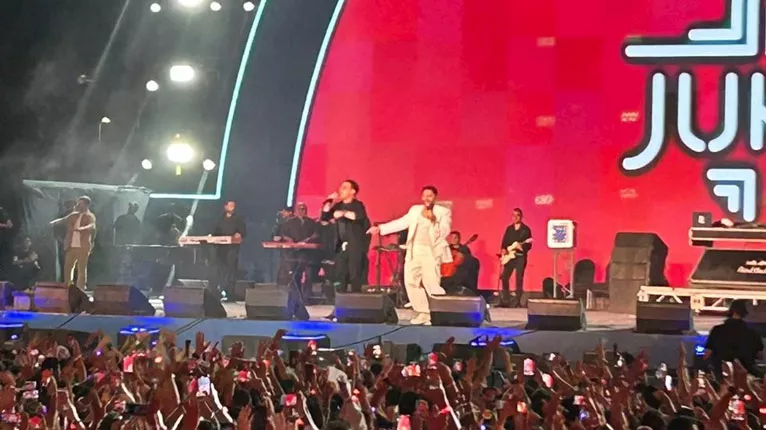 وقدم عدد من المفاجأت خلال الحفل، إذ شاركه الفنان رضا البحراوي ومغني المهرجانات كزبرة.