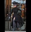 أما آخر طلة فكانت من Alexander McQueen وكانت عبارة عن معطفٍ أسود قصير من الأمام وطويل من الخلف مع بطانةٍ حمراء وجزمة جلدية بساقٍ عالية وحقيبة Heroine من الدار. ولكن القطعة الأكثر لفتاً للإنتباه كانت قبعة Philip Treacy المحبوكة بشكل سلّة والمزوّدة بقناعٍ يغطي العينين.