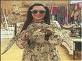 بالصور- سلاف فواخرجي في رحلة نيلية وتحمل تمساح بأسوان