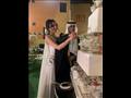 الحفل اقتصر على حضور عائلتي العروسين فقط، وظهرت العروس ترتدي فستان أبيض بسيط، بينما ارتدى العريس الزي السعودي.