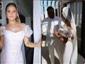 وظهرت نيللي في الصورة مرتدية فستانًا أنيقًا، وطرحة زفاف على رأسها.