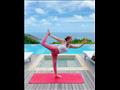 وظهرت نسرين، في الصور التي نشرتها عبر حسابها بموقع "إنستجرام"، وهي تمارس التمارين بملابس رياضية على الشاطئ بإحدى جزر سيشل.