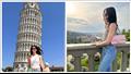 تارا عماد تلتقط سيلفي مع برج بيزا المائل في إيطاليا