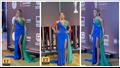 وظهرت من خلال فيديو نشرته الصفحة الرسمية لبرنامج ET بالعربي عبر موقع التواصل الاجتماعي "انستجرام"، بفستان أنيق، باللون الأخضر والأزرق.