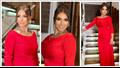 وظهرت روجينا، بإطلالة أنيقة بفستان أحمر ومكياج رقيق