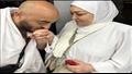 وظهر حسام في الصورة وهو يُقبل يد والدته، أثناء أدائهم مناسك العمرة.