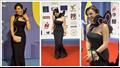 وجاء من أبرز الحضور على السجادة الحمراء هي الراقصة الاستعراضية جوهرة التي ارتدت إطلالة غريبة وهو فستان أسود بالكامل ملتف حول رقبتها وفي نهاية شكل أشبه بقلب.