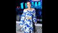 وأطلت ملك أحمد زاهر، مرتدية فستانا باللونين الأبيض والأزرق، مع وضع حزام بيج اللون.