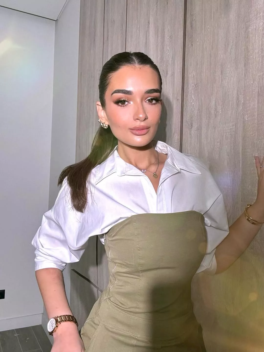 وظهرت ملك في الصور بإطلالة أنيقة، إذ ارتدت جمبسوت باللون الأخضر الفاتح نسّقته مع قميص أبيض ووضعت مكياجًا هادئًا أبرز ملامحها.