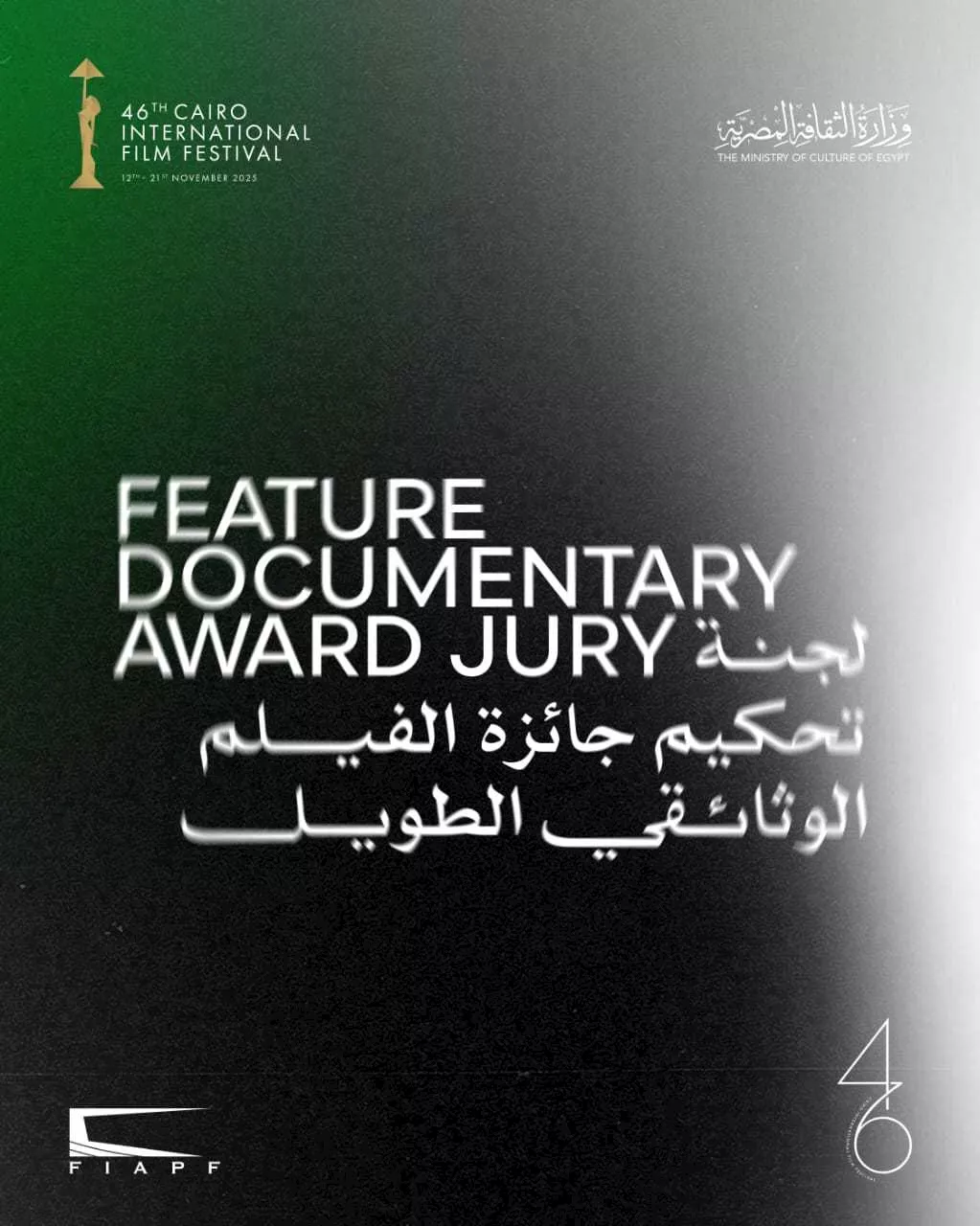 أعلن مهرجان القاهرة السينمائي الدولي أسماء أعضاء لجنة تحكيم جائزة أفضل فيلم وثائقي في دورته الـ46، التي تقام في الفترة من 12 إلى 21 نوفمبر 2025.