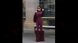 وظهرت مي في الإطلالات بفستان جمبسوت ضيق باللون البنفسجي، نسقته مع بوت طويل من الفرو بنفس اللون ونظارة شمسية كبيرة.