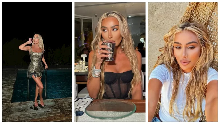 وظهرت مايا بأكثر من إطلالة جريئة، أحدها ترتدي فستان قصير داخل حمام السباحة، والأخرى داخل أحد المطاعم.