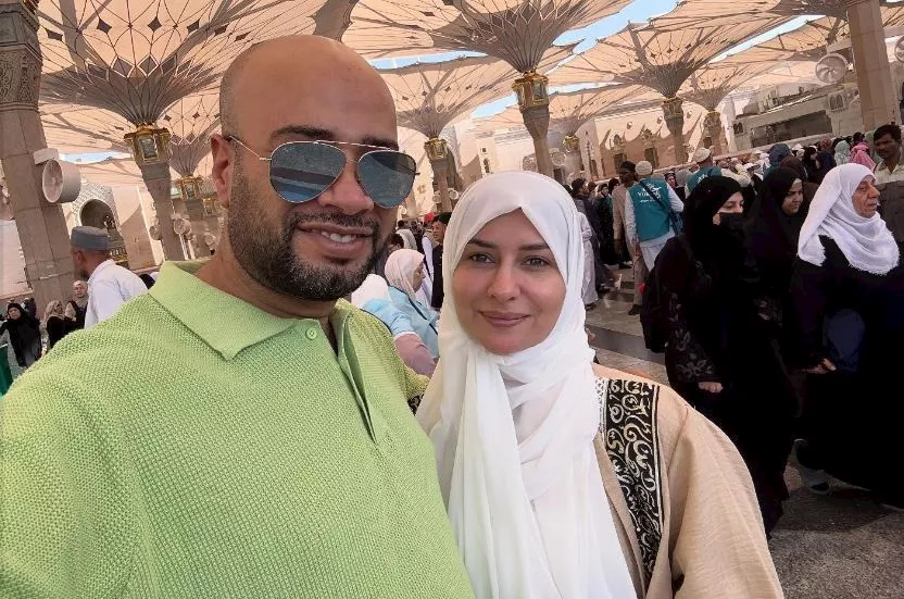 حاتم صلاح يؤدي مناسك العمرة ويزور المسجد النبوي رفقة زوجته