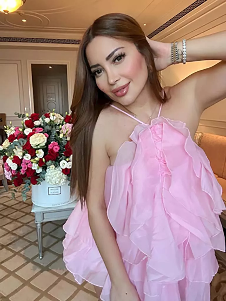 وظهرت نسرين بإطلالة جريئة وأنيقة، إذ ارتدت فستانًا قصيرًا باللون الوردي، ونسّقته مع باقة من الورود التي حملتها بين يديها.