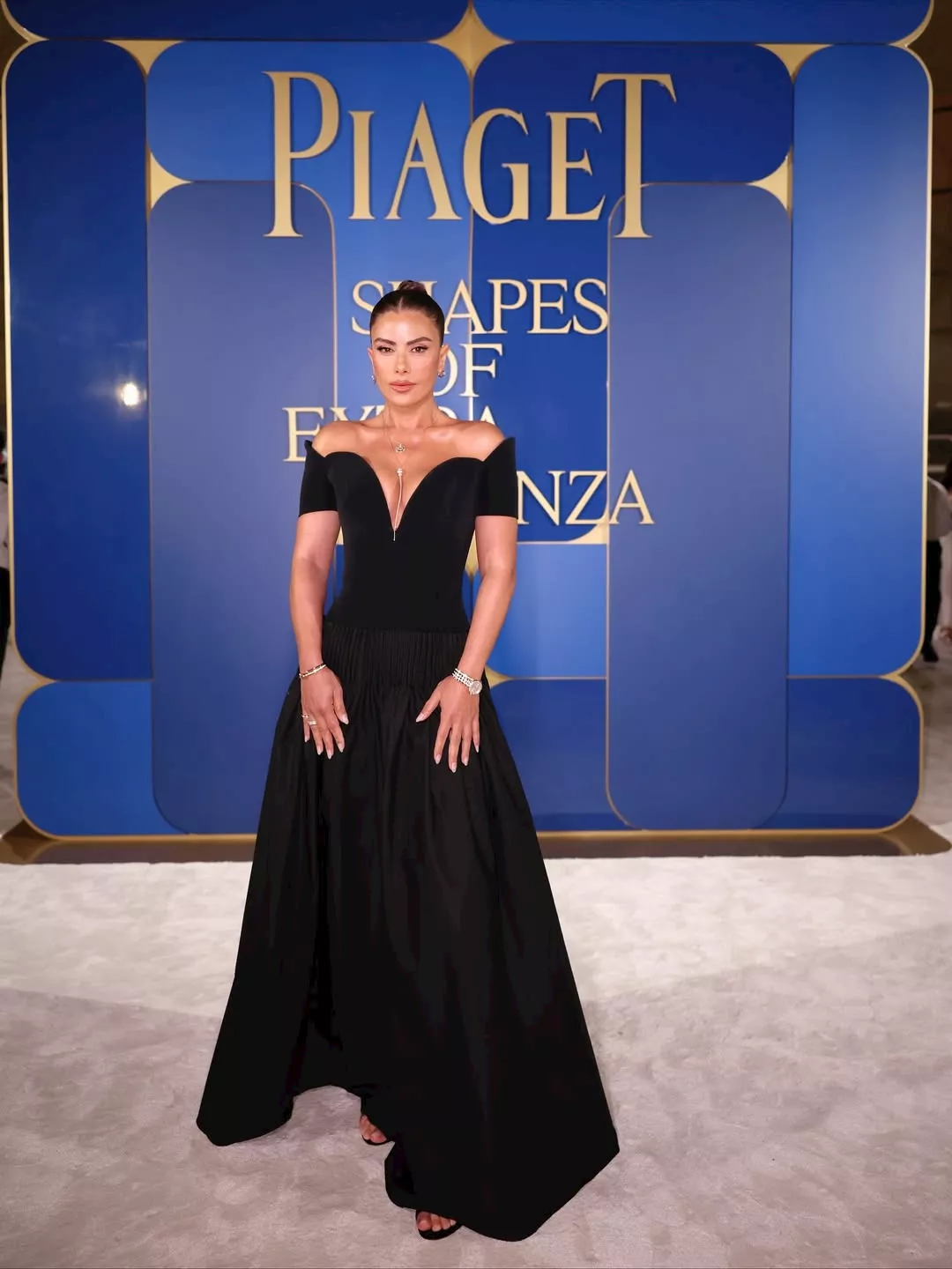 وظهرت صبا مبارك بإطلالة جريئة وأنيقة، إذ ارتدت فستانًا باللون الأسود، ووضعت مكياجا هادئا أبرز ملامحها.