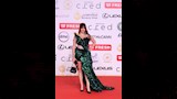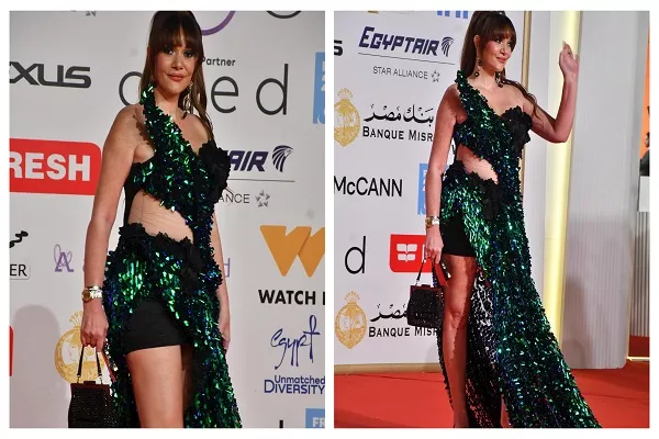 وظهرت حسناء سيف الدين على السجادة الحمراء بإطلالة جريئة وغريبة، مرتدية فستان أخضر لامع بجزء شفاف من عند البطن، في افتتاح مهرجان القاهرة السينمائي.