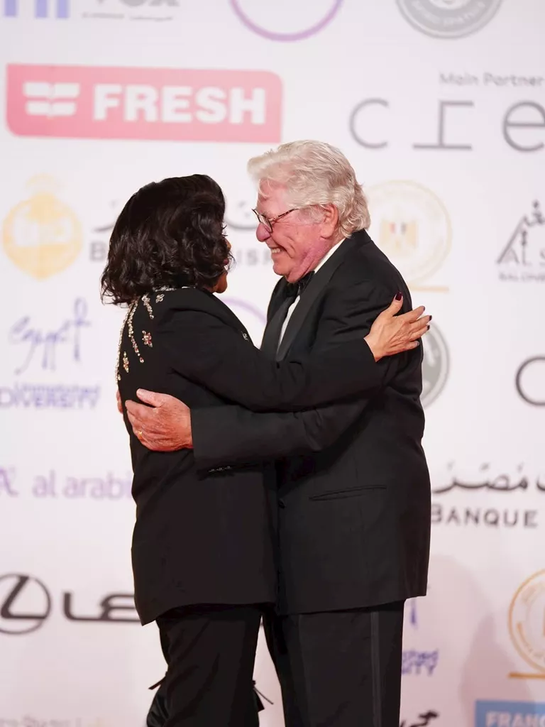 في لحظة استثنائية، ظهر الفنان حسين فهمي والفنانة إسعاد يونس وهما يتبادلان الأحضان خلال حفل افتتاح الدورة الـ46 لمهرجان القاهرة السينمائي، المقرر إقامته في الفترة من 12 إلى 21 نوفمبر 2025.