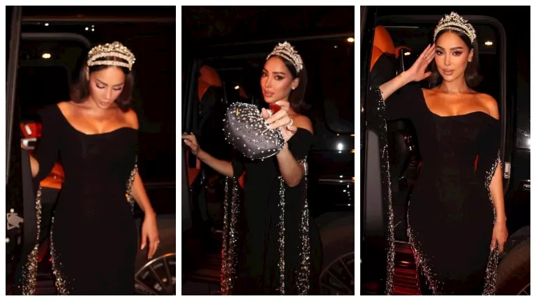 ظهرت بسمة بوسيل مرتدية فستان أنيق وجذاب، ووضعت تاج على رأسها، وحازت الصور على إعجاب جمهورها ومتابعيها.