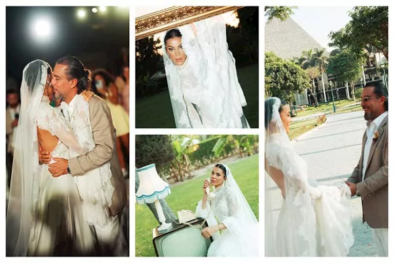 ظهر الثنائي وهما يخضعان لجلسة تصوير رومانسية، كما ظهرا بالصور وهما يحتفلان بدخول عش الزوجية وسط الحضور، وكتبت تعليقا على الصور: "كل تفصيلة كانت فن، وكل لحظة كانت حقيقية، شكرا لكل اللي خلى اليوم بالشكل ده.