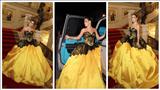 وظهرت جومانا في الفيديو بإطلالة أنيقة، إذ ارتدت فستانًا طويلًا باللونين الأصفر والأسود.