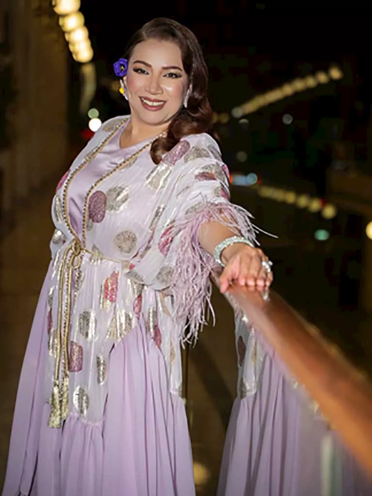 وظهرت انتصار بإطلالة أنيقة وهادئة، مرتدية فستانًا باللون الوردي الفاتح، مُزين على الأطراف، وأضافت إليه حزام ذهبي، مع مكياج ناعم أظهر ملامحها.
