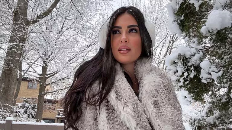 ميرنا نور الدين تستمتع بالأجواء الشتوية وسط الثلج من أحدث ظهور
