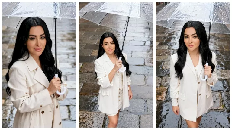 ونشرت ميرهان عبر حسابها الرسمي بموقع "فيسبوك"، صورًا لها مصممه بالذكاء الاصطناعي، ظهرت مرتدية فستان قصير وجاكت شتوي فوق الركبة وتحمل مظلة لحمايتها من سقوط الأمطار.
