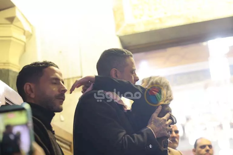 حزن وصدمة أحمد الفيشاوي أثناء تلقيه عزاء والدته سمية الألفي