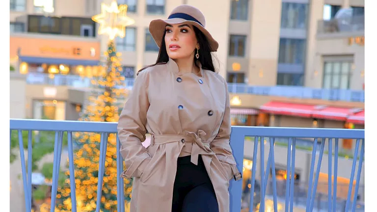 وظهرت بإطلالة شتوية أنيقة، إذ ارتدت خلالها بالطو باللون البني وبنطلون أسود.