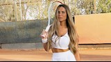 "شارابوفا مصر".. ريم مصطفى تخطف الأنظار بإطلالة جريئة من ملعب "التنس"