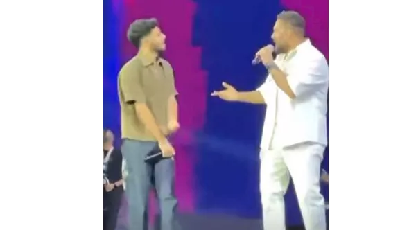 تامر حسني يقدم كريم أسامة في حفل العلمين الجديدة.. والأخير يشكره