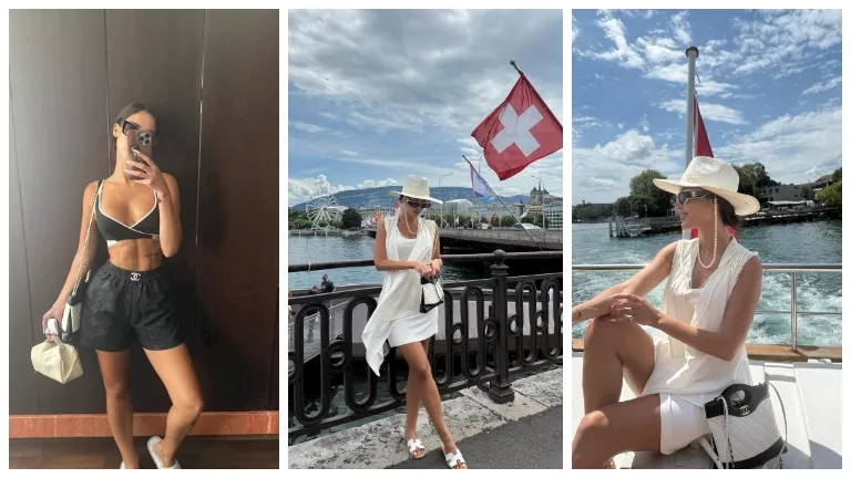 وارتدت مجموعة من الإطلالات الكاجوال والرياضي، من بينها شورت من ماركة "شانيل"، وفستان أبيض قصير وقبعة أنيقة.