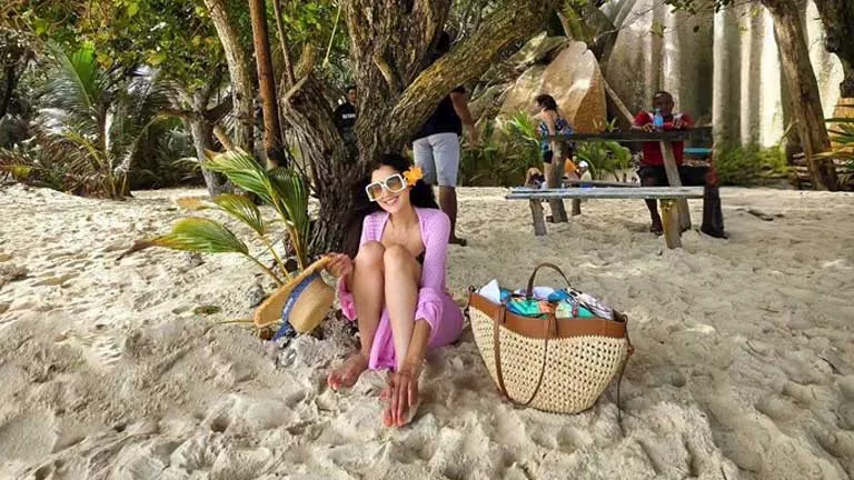 وعلقت على الصورة: "كنت أريد إجازة حيث لا أضطر إلى ارتداء فساتين فخمة وماركات طوال الوقت... إجازة حيث يمكنني المشي حافية القدمين، والاسترخاء تحت شجرة، والشعور بمزاج الصيف الحقيقي، وأن أكون حرة.. روح حرة".