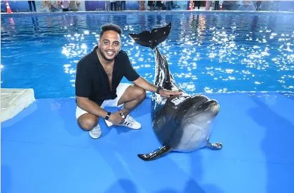 أوس أوس يشارك جمهوره صورة مع دولفين في الساحل الشمالي