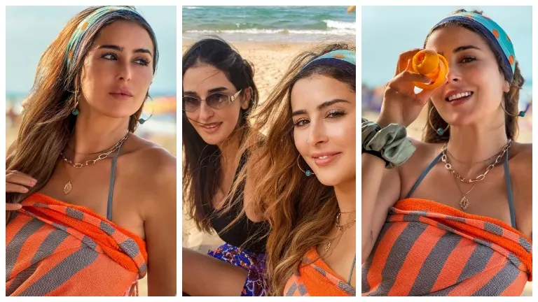 ونشرت عائشة، الصور، عبر حسابها على إنستجرام، وعلقت: "الشمس والرمال والقبلات".
