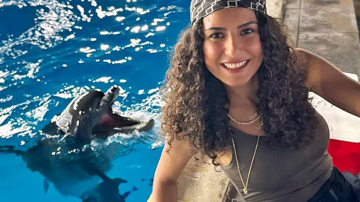 ظهرت ريهام أيمن رفقة زوجها الفنان شريف رمزي وأولادهما وهم يستمتعون بالإجازة وسط الدلافين، وحرصوا على التقاط العديد من الصور التذكارية.